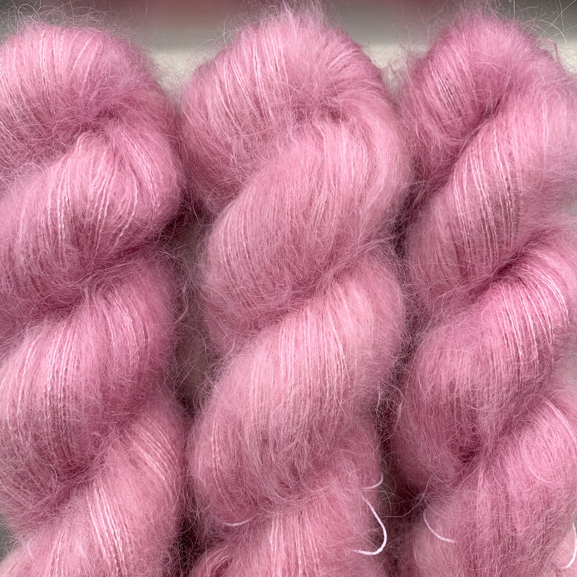 Hand-dyed yarn in wonderfully soft mohair silk.